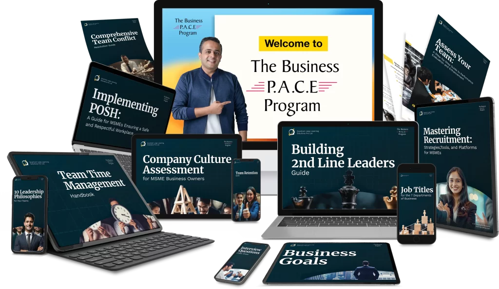 The Business P.A.C.E. program is an ONLINE 3 Day LIVE Program where you will be trained by Rajiv Talreja who is India’s leading MSME Business Coach on how to build high-performing teams, systems and strategies to build a business that can scale without your daily involvement.